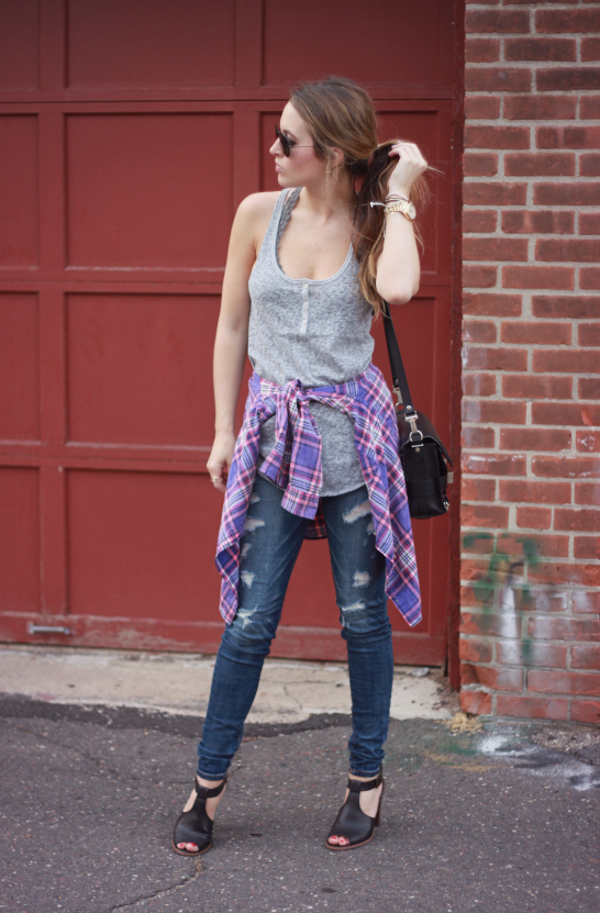 {Plaid Shirt, Tank, Jeans, Heels, Bracelets & Rings: c/o American Eagle || Bag: Proenza Schouler || Sunglasses: Ray Ban}