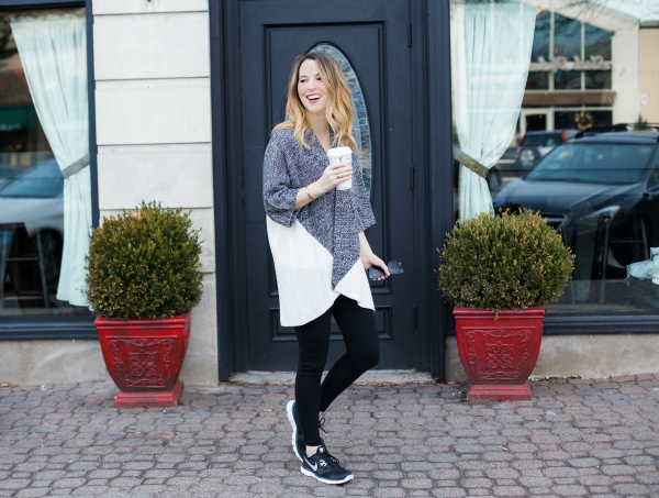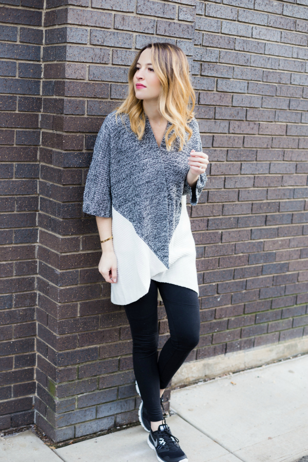 I’ll be the first to admit, I’m one of those people who needs to feel put together to leave the house. I absolutely hate going out in anything that can be considered sweats or workout gear, except going to the gym and back. Enter athleisure. Seriously, whoever invented the athleisure trend needs a serious hug. It’s the perfect blend of athletic wear and straight-up comfort that lets you look practical while also looking stylish. Target has an incredible line of athleisure styles, and I styled three of my favorite versatile pieces from the current collection, including this leisure tunic, color-block cardigan and moto leggings.