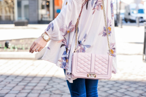 I’m trading in my neutrals for this gorgeous blush color to help me get that summer feeling back! If this top looks familiar, it’s because I own it in a few colors! You can see how I featured it on the blog back in late 2015 and now I’m back with this gorgeous blush shade for spring! I wanted to show off its versatility, so I paired the floral tunic with this gorgeous quilted crossbody bag, my favorite pair of destroyed denim and two pairs of shoes: either these Joie flat booties or these Schutz strappy sandals. This top is sold out everywhere and only available at Zappos in this exact print, so scoop it up now before it sells out! In case it does (because it will), here’s a similar style top and the sleeveless version of this shirt in a pretty light blue! It’s perfect to pair with denim shorts and flat ankle boots for festival season and even doubles as a swim coverup — I had it with me in Mexico!