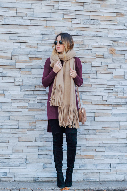 I’ve been featuring this Free People scarf all over my Instagram – and, I’m still standing by my prediction that this will be the new blanket scarf of the season! Scoop it up now while it’s back in stock, it’s been selling out left and right and will be gone again before the holidays! I love how it takes this layered look up a notch and is so cozy paired with this cashmere tunic, my favorite pair of black jeans, and my OTK boots!