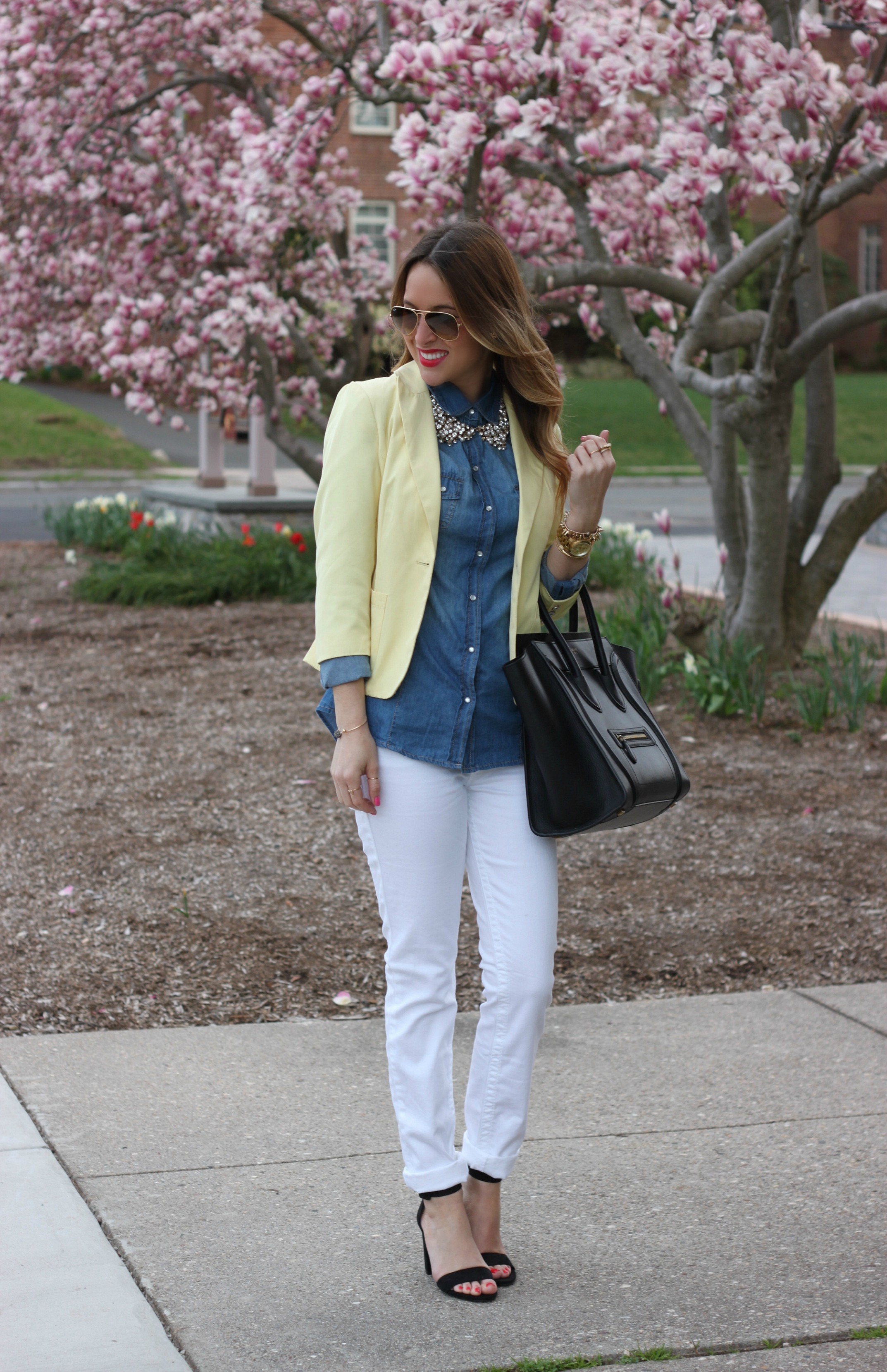 April 25, 2013 at 9:43 amLove how you did this with the chambray and yellow blazer…so cute!